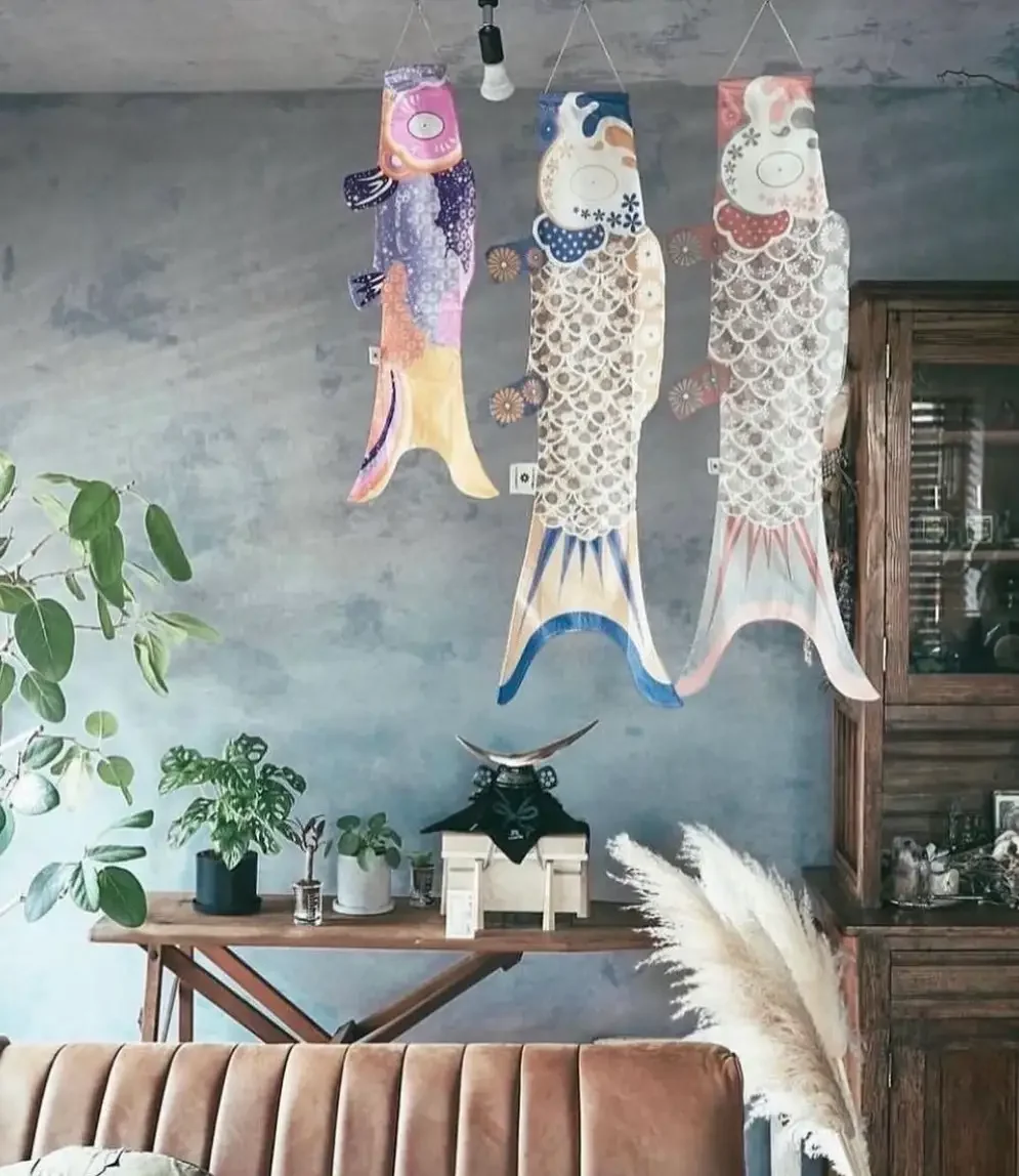 近年は日本のお土産としての人気も高まり、伝統的な和のデザインは海外の方にも好評を得ています。贈り物としてはもちろん、リビングや本棚、子ども部屋などに飾るインテリアとしても親しまれ、「幸運の魚」として一年を通して楽しまれています。また、ペット用こいのぼりやキャンプ用こいのぼりなど、現代のライフスタイルに寄り添った展開も特徴です。ペットとの記念撮影や、キャンプ場での目印としても楽しめます。