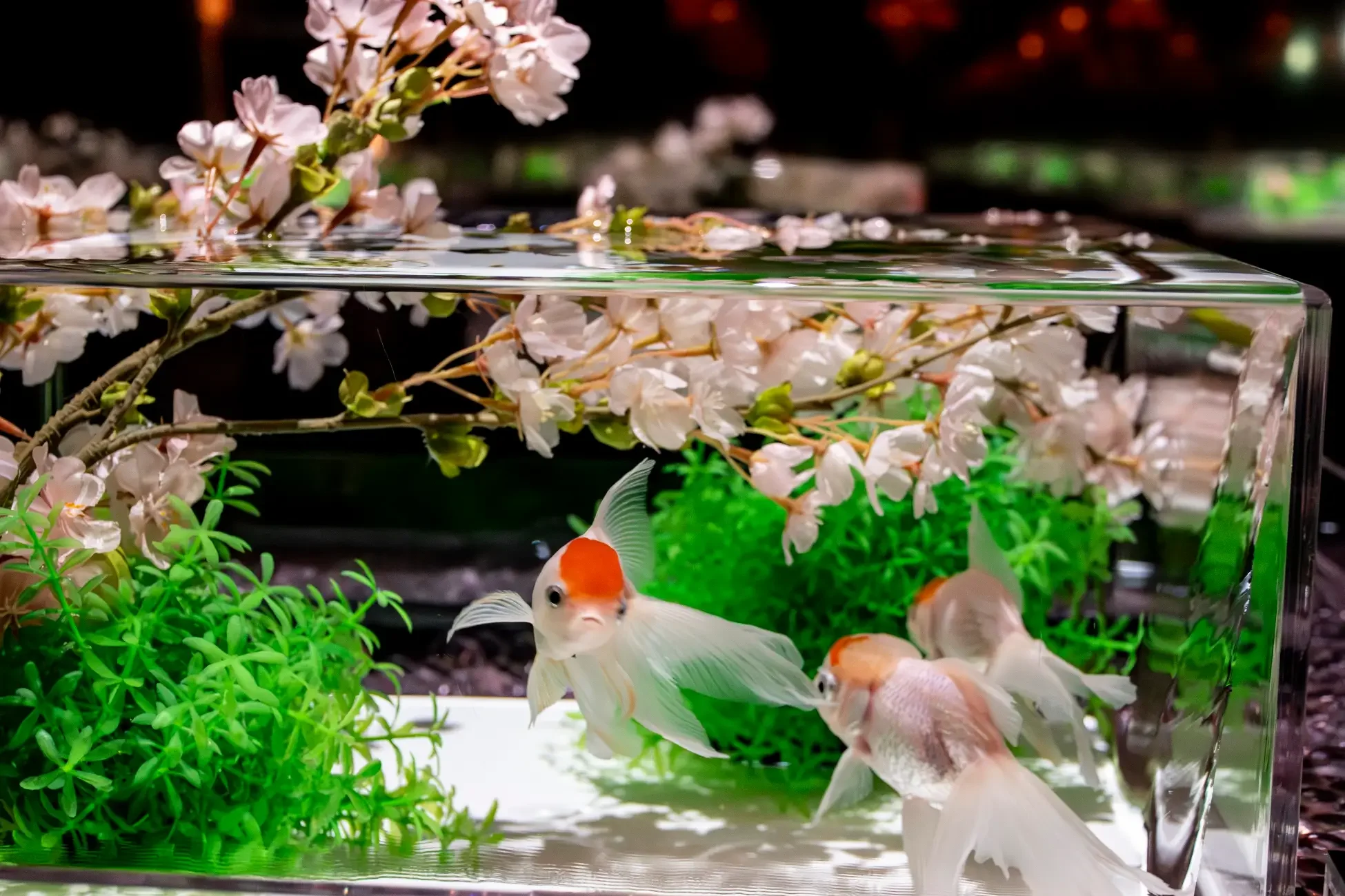 金魚が優雅に泳ぐ水槽内にも桜の花が彩られ、華やかな空間になります。