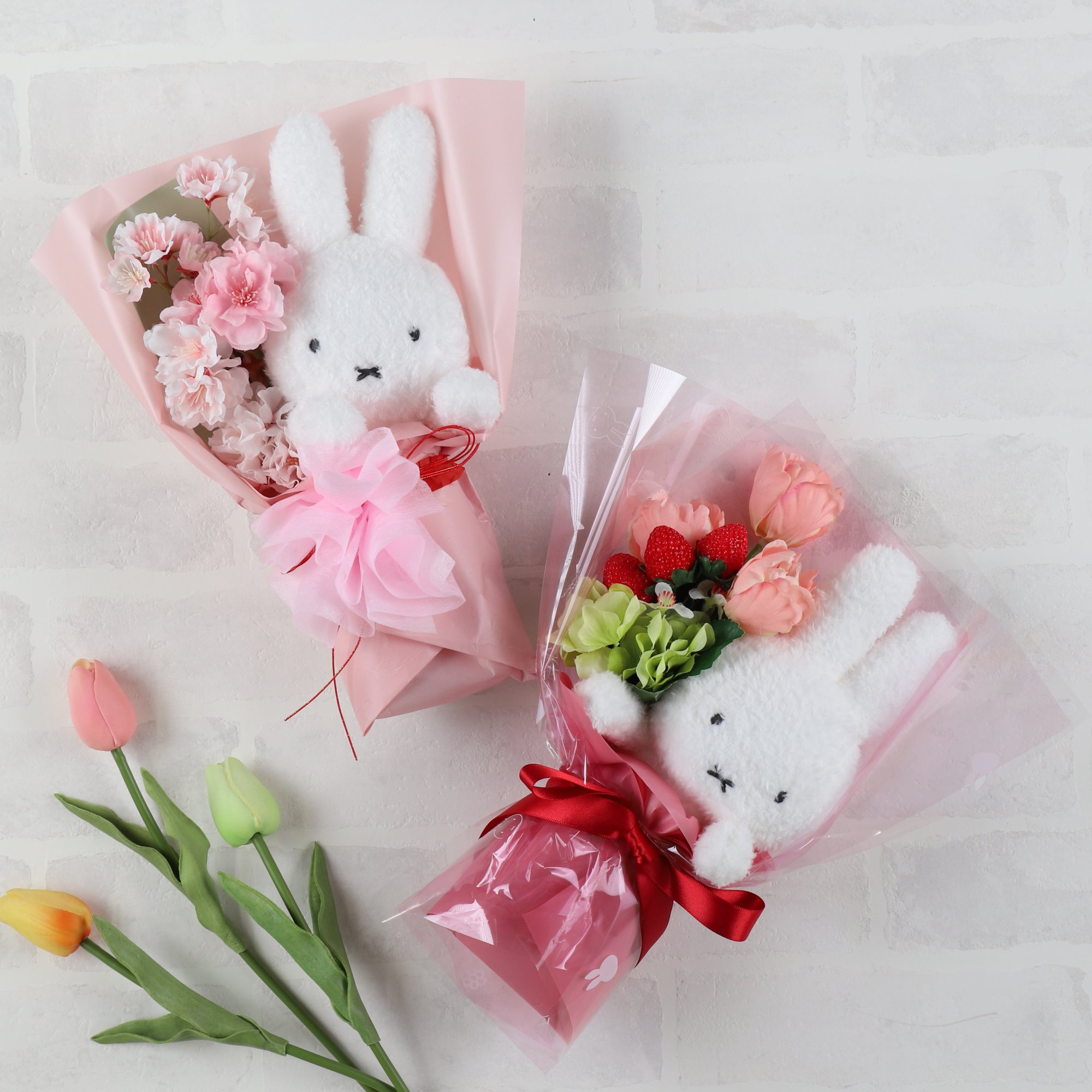 人気の「着せかえほわほわぬいぐるみ」とお手入れ不要のアートフラワーのブーケです。華やかで愛らしいミッフィーの姿を楽しめる本アイテムは、自分用にはもちろん、贈り物にもぴったりです。