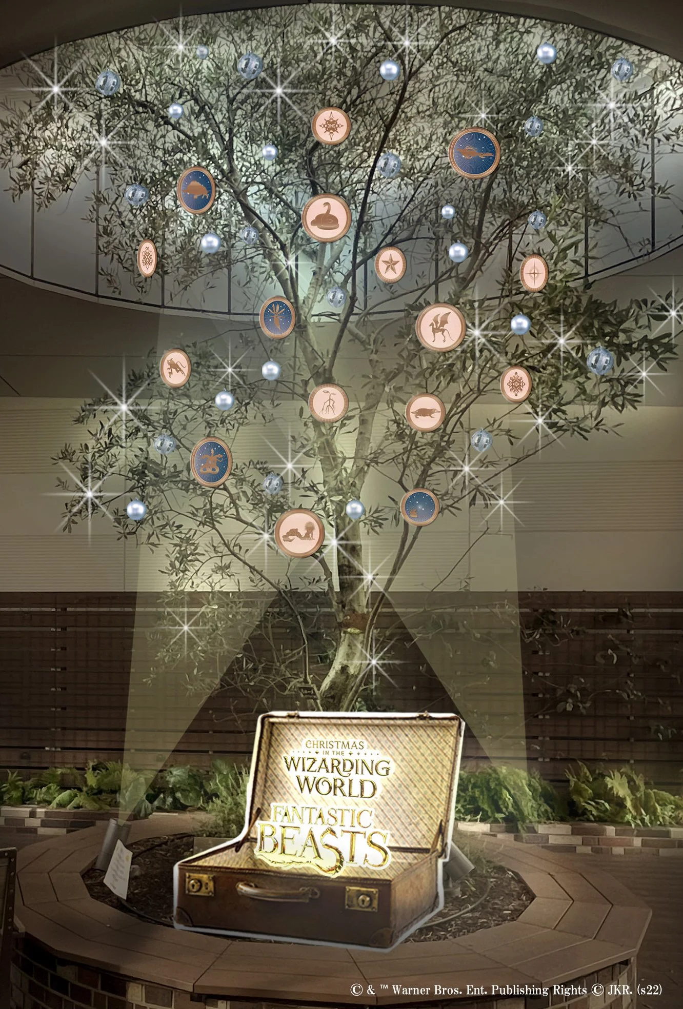 5階「みんなの庭」入口では、“「ファンタスティック・ビースト」魔法動物の樹”に遭遇。ニュートのスーツケースから逃げ出してクリスマスツリーに隠れてしまった魔法動物が、フラッシュ撮影の光で浮かび上がります。