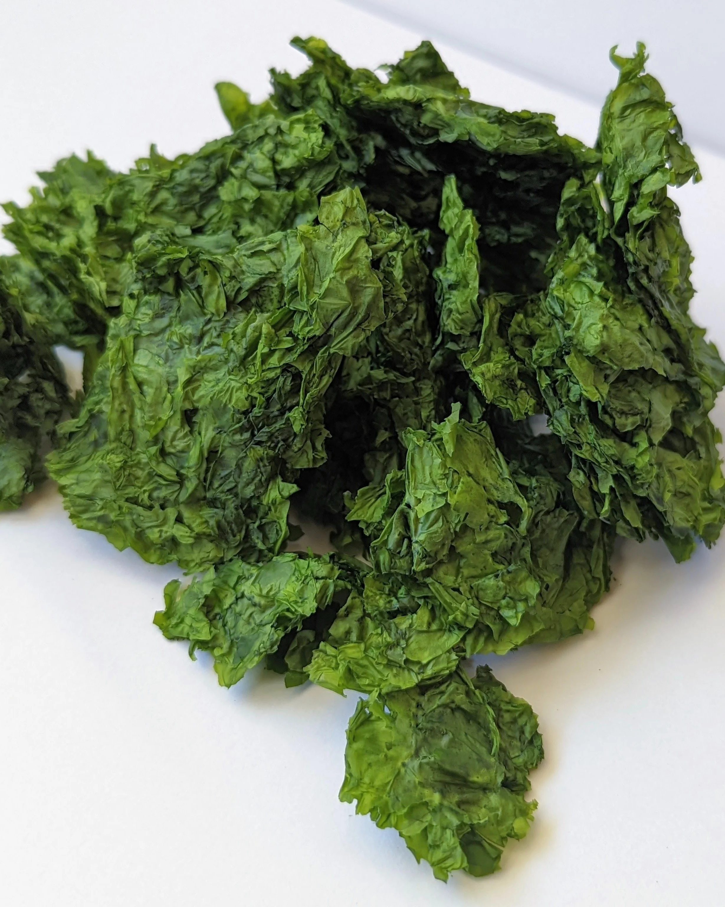 「生」のすじ青のりは、全国でほとんど流通しません。シーベジタブルでは、地下海水を用いる安定した栽培方法により、一年を通して新鮮な生のすじ青のりをお届けすることが可能です。揚げ物にすることで、すじ青のり本来の香りが引き立ちます。