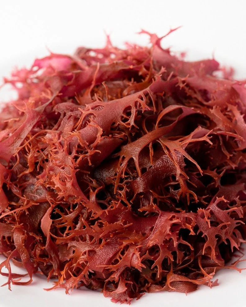 九州の一部地域で愛されてきた、今では幻の海藻とも呼ばれる希少な海藻です。生の状態では数時間しか状態を保てないほど繊細な海藻で、収穫してすぐに塩蔵処理を行い、鮮度を維持しています。外側はコリッとした歯応えでありながら、中身はジュルッとしたとろみがあります。