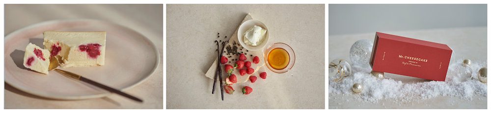店頭では、定番フレーバーやポップアップストア限定フレーバーに加え、初雪のような純白に仕上げたケーキに2種類の赤いベリーを組み合わせた「Mr. CHEESECAKE White Berry」と、濃厚な味わいのローストピスタチオを贅沢に使用した「Mr. CHEESECAKE Pistachio Raspberry」のホリデー限定フレーバー2種類を販売します。