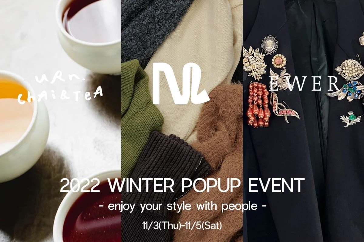 また、イベントトピックスとして、学芸大学に店舗を構える古着屋「EWER」、恵比寿に店舗を構える「uRn.cAi&Te A(アーン チャイ&ティー)」の出店もあり、お洋服を中心に空間を楽しんでいただけるような内容をご用意しております。