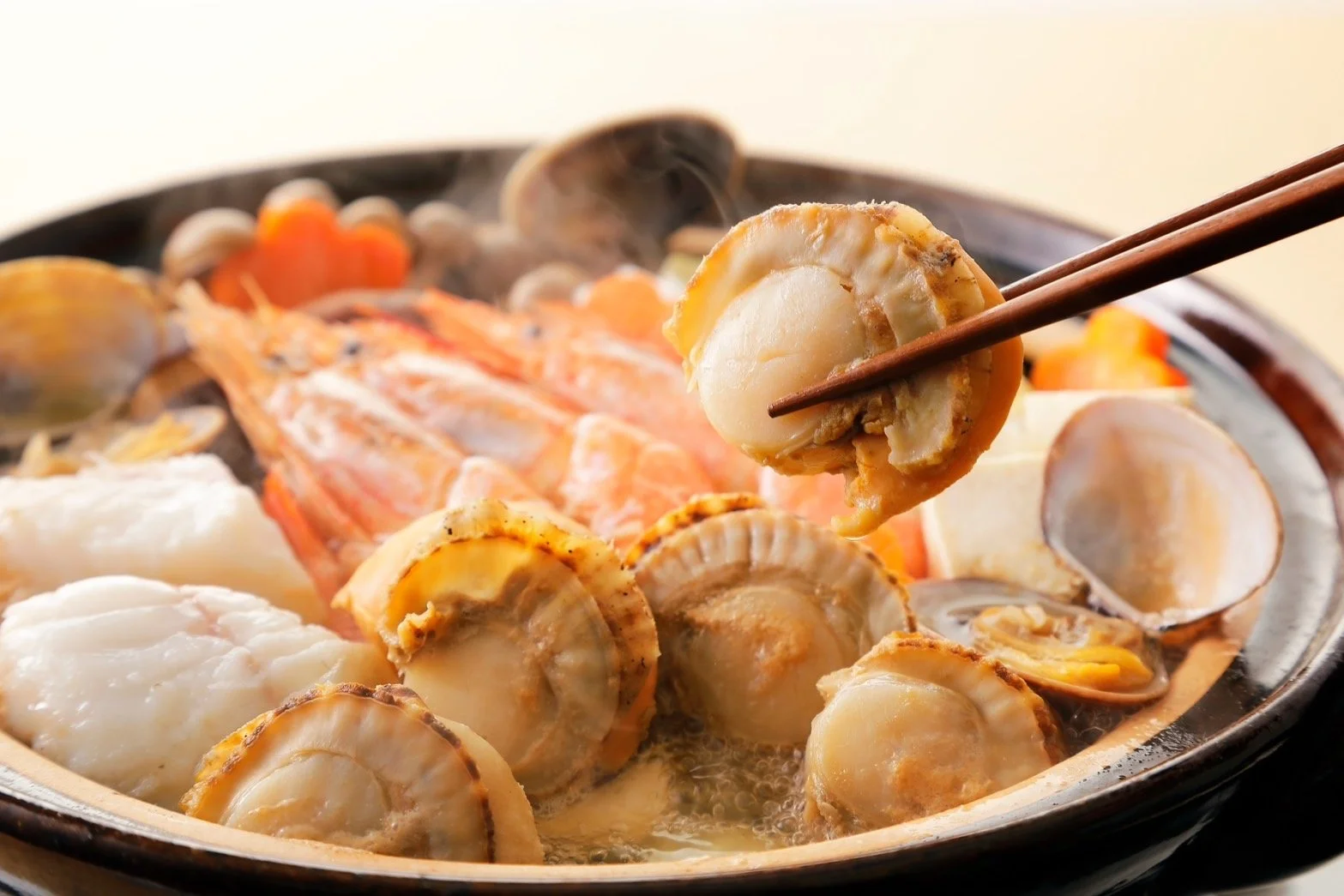 ホタテの王様と呼ばれる青森県陸奥湾産のホタテをふんだんに使ったホタテ鍋です。嚙めば嚙むほど旨味たっぷりのホタテを是非この機会に食べてみてください。
