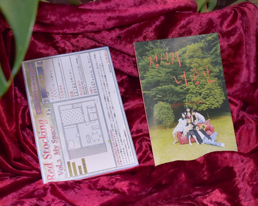 ・「Girls support girls(女性が女性をサポートする)」をテーマに、参加者がそれぞれのタイミングにおける「女性」を思考し発信するzine制作コミュニティ「Red Stocking」によるzineやグッズ