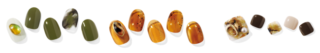 サロンの品質と⼿間をセミキュアジェルというネイルシールのように貼るタイプの新しいジェルネイルを作ることで、⼿軽さはそのままに、本物のジェル特有の仕上がりの美しさを楽しむことができるようにしました。