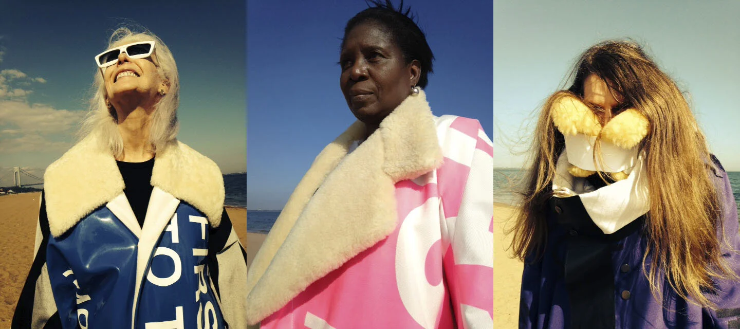 デザイナーの大丸隆平がニューヨークの街を歩いていて注目したのがストアフロントのひさしとしてよく使われているオーニング素材。さまざまな書体のグラフィカルなプリントはこの街の多様性も象徴している。雨風にも強いこの素材をコートとして仕立て、着てみたらどうだろう?というアイディアが、ブランドの立ち上げに繋がっていった。