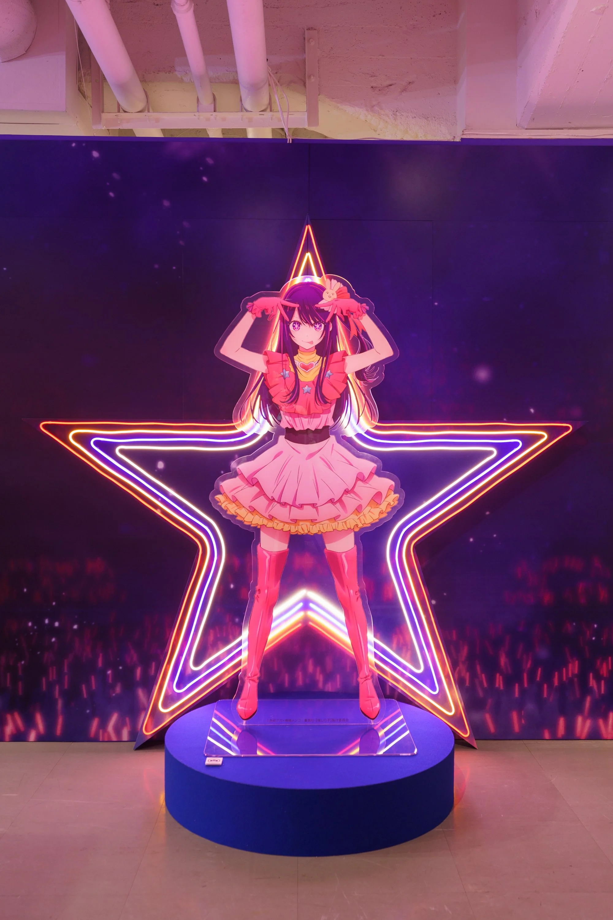 本展では、現在放送中のTVアニメに使用された絵コンテ、原画の複製展示の他、物語の中で着用している衣装の再現展示、ライブステージ映像コンテンツ、作中の印象に残る様々なシーンを再現し、体験が出来る多くのフォトスポットなども展示します。さらに音声ガイド付きチケットを購入すると、会場限定のスペシャルな「アイ」の音声で展示をご案内します。また会場では、展覧会開催を記念したオリジナルグッズも販売予定です。追加詳細情報はPARCO ARTにて随時発表します。