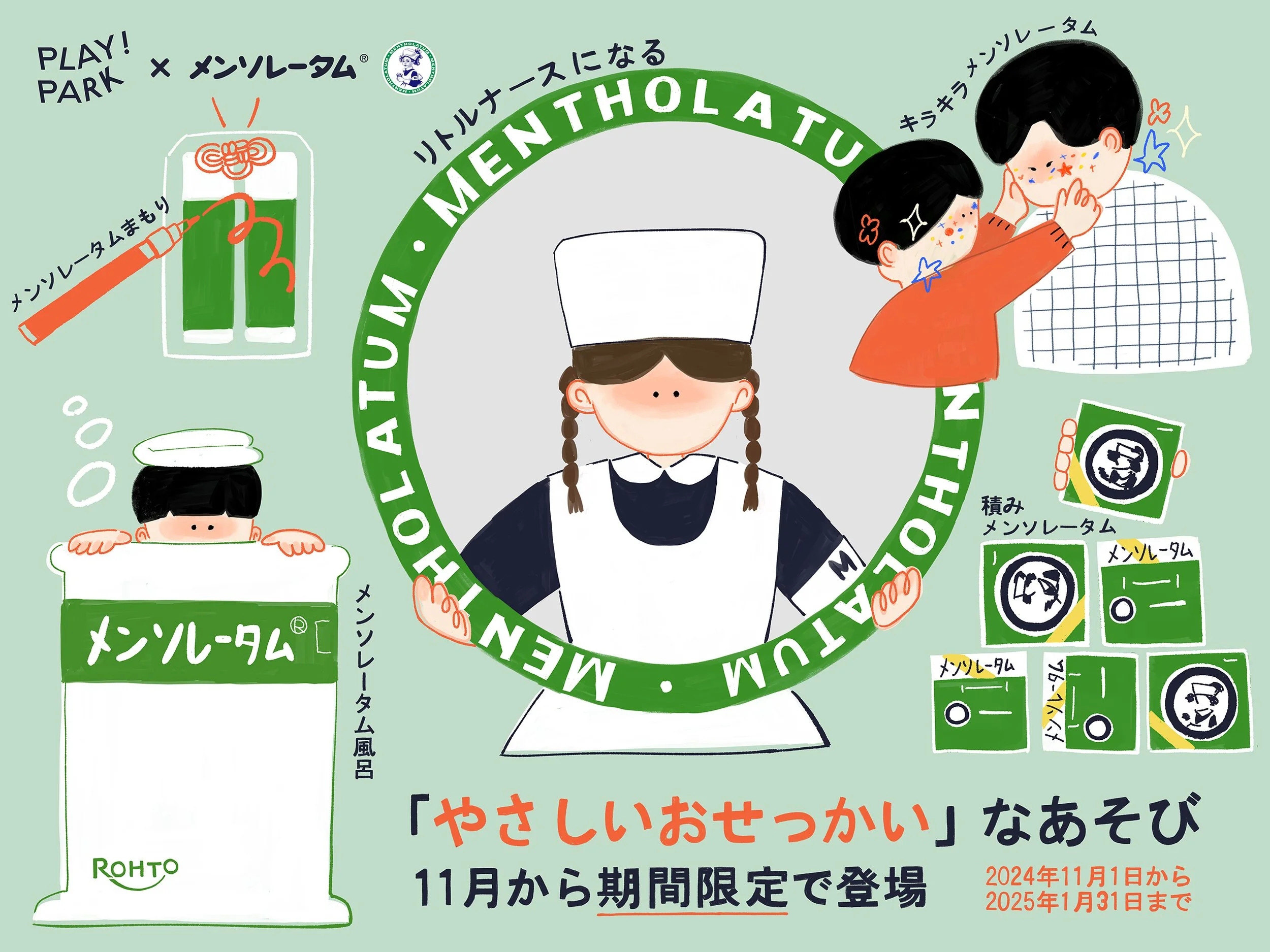 未知との出会いをコンセプトにした、子どもが自由に遊べる屋内キッズパーク「PLAY! PARK」は、ロート製薬とコラボレーションし、子どもから大人まで楽しめる、メンソレータム®づくしの「やさしいおせっかい」なあそびを、2024年11月1日(金)から2025年1月31日(金)まで、3ヶ月限定で開催します。