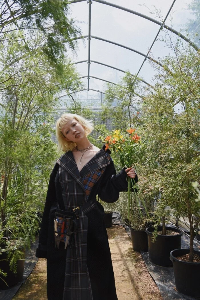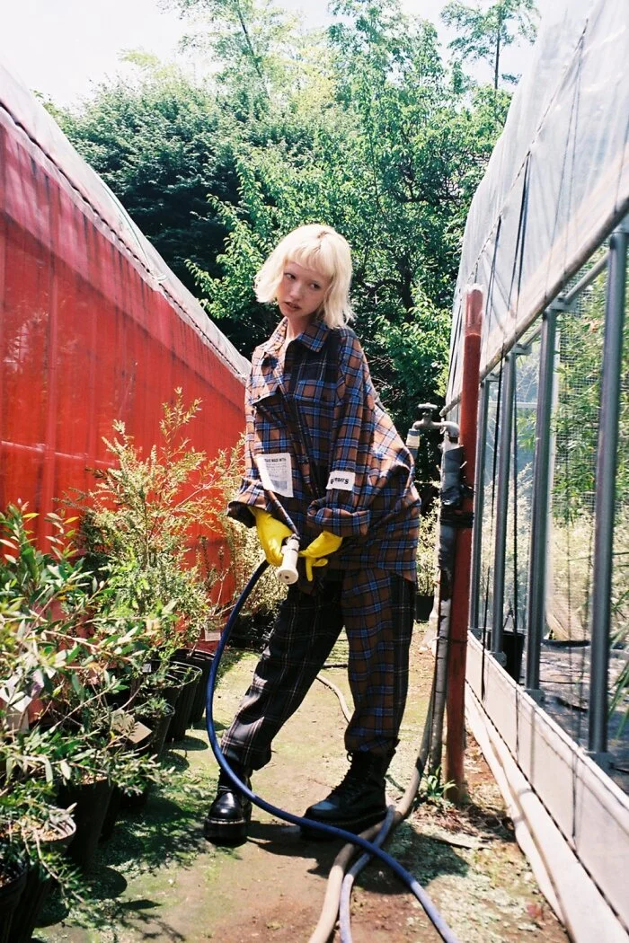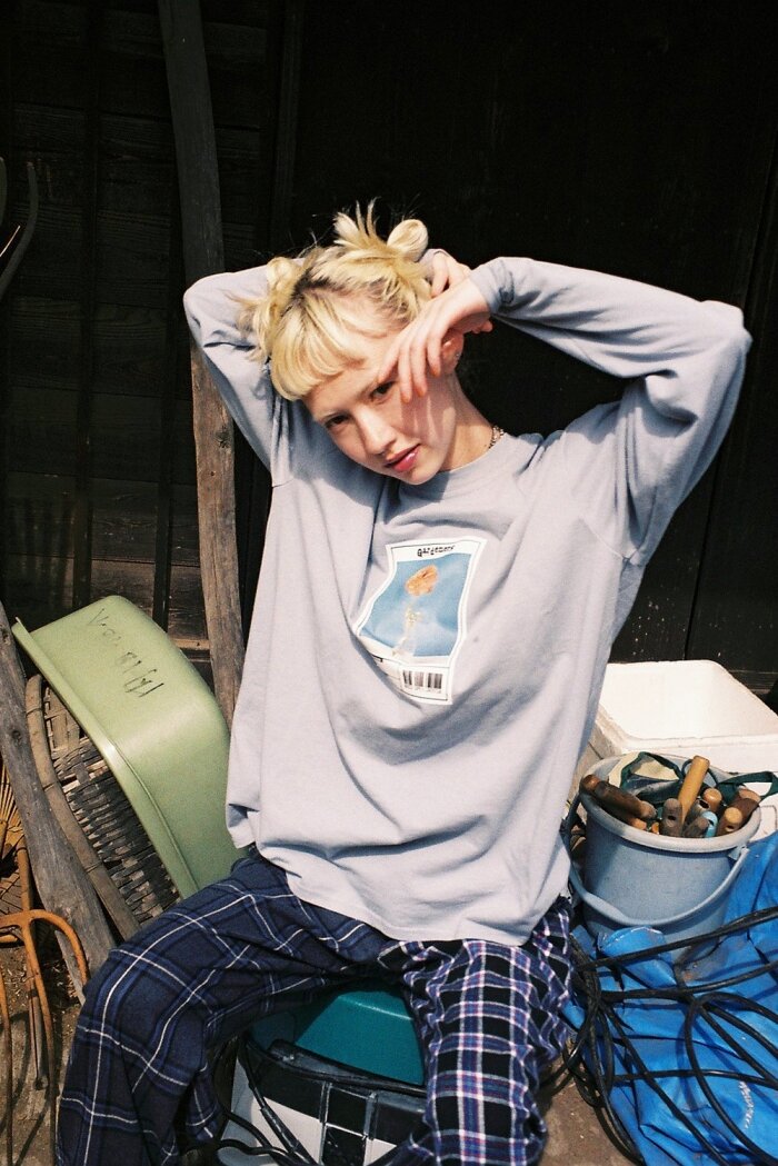 FLOWER PHOTO PRINT L/S TEE / GARDENER CHECK PANTS