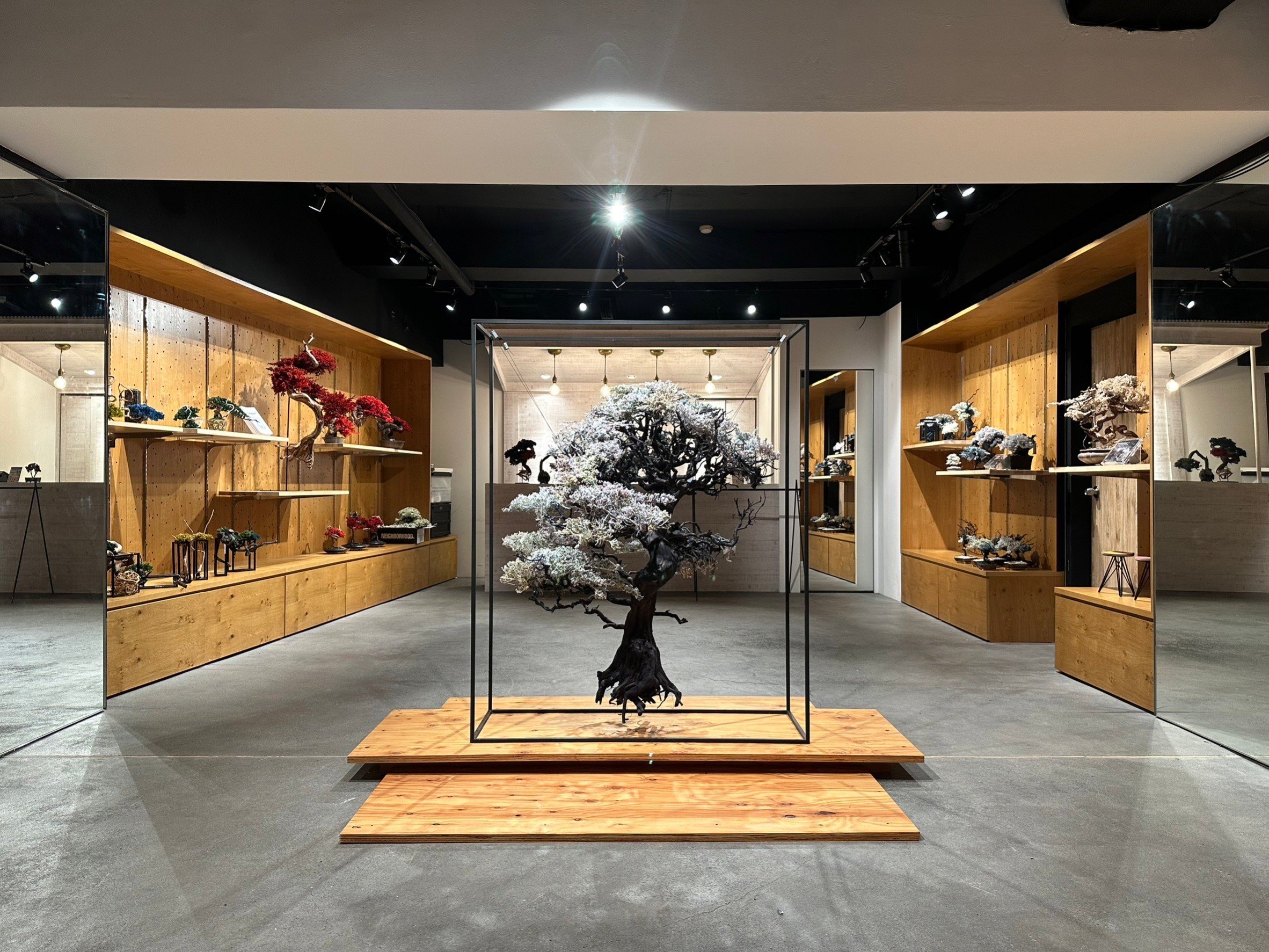 NEW ITEMのスニーカー盆栽をはじめ、新作サマーコレクションシリーズ、人気の豆盆栽、世界初藍染盆栽など、新旧含めたフルラインナップを展示します。この機会に是非とも、枯れた盆栽に、命を吹き込むアート“RE BONSAI™️”を一目見に渋谷にお越しください。
