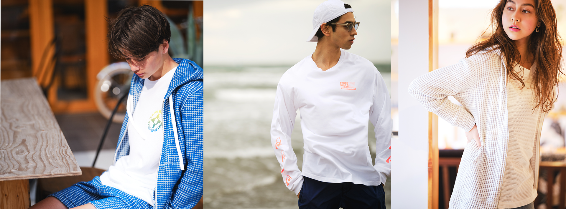 2020 S/SコレクションはSeagreenらしいリラックス感がありながら西海岸をイメージさせるコレクションに、カジュアルで温かみのあるカラーが揃っています。また3つのドネーション団体とコラボレーションTシャツ、キャップ、i phoneケース、タオルを発売します。