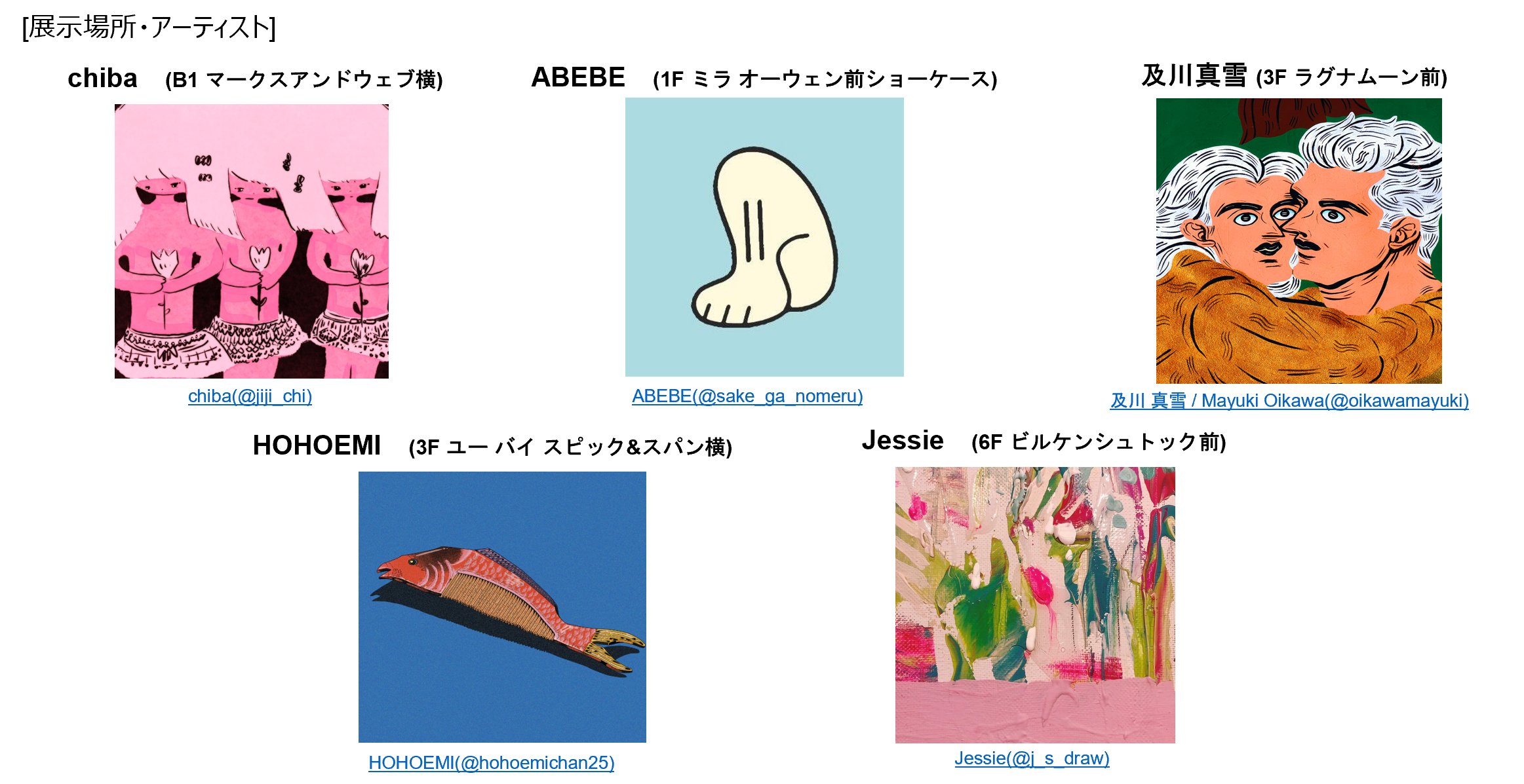出展アーティスト: ABEBE、及川真雪、Jessie、chiba、HOHOEMI