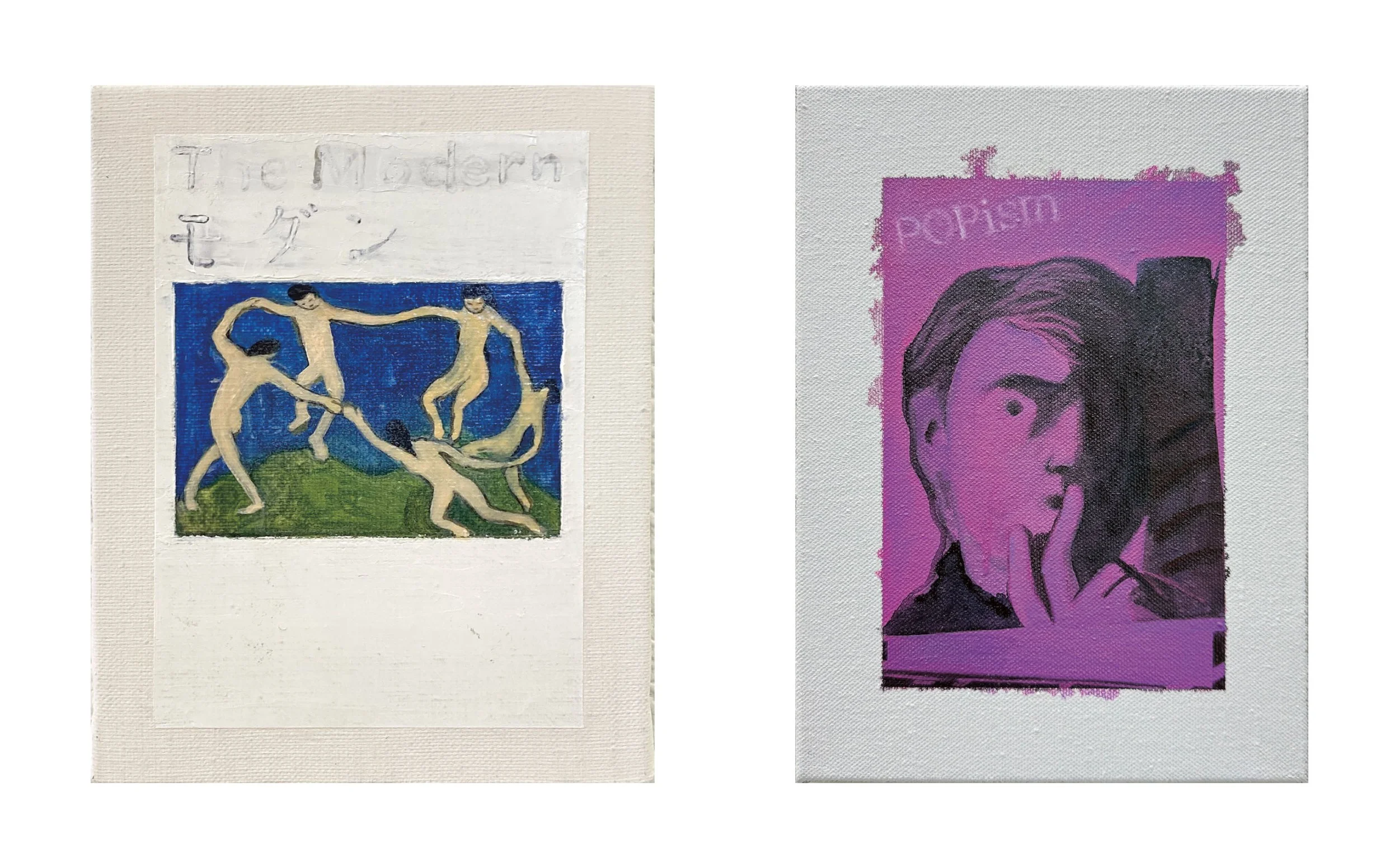 飯田美穂が、「THE BOOK」というテーマにあわせブックカバー作品をオマージュしたシリーズ作品を展示。原田マハの小説の装丁をモチーフにした作品シリーズをはじめ、アンディ・ウォーホル「POPism」のブックカバーをモチーフにした新作平面作品とインスタレーション作品を発表。