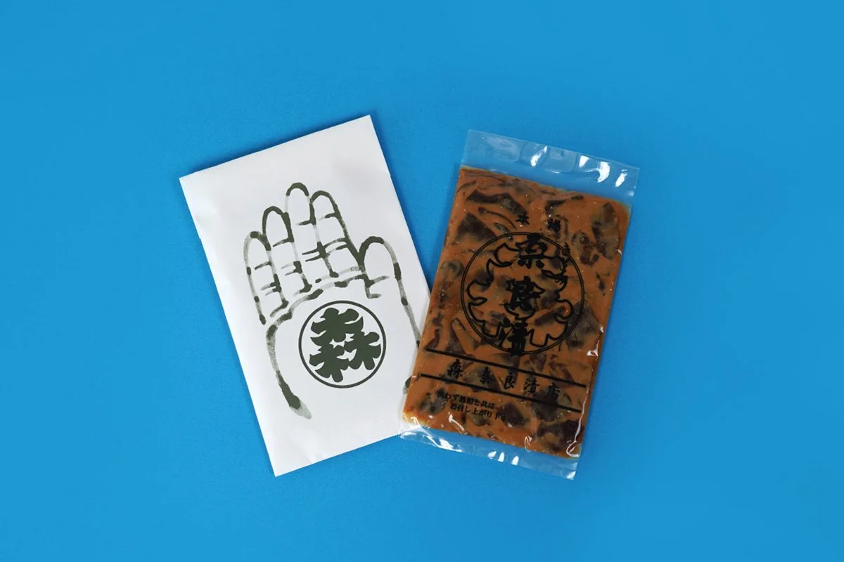 瓜と胡瓜をきざんで酒粕と共に漬けた「きざみ奈良漬」。東大寺南大門前にお店を構える老舗「森奈良漬店」が手がけた伝統ある逸品で、白ごはんと一緒に食べれば箸が止まらない美味しさ。大仏さまの右手を大きくあしらった、60年間変わらないインパクト大なパッケージデザインが特徴です。