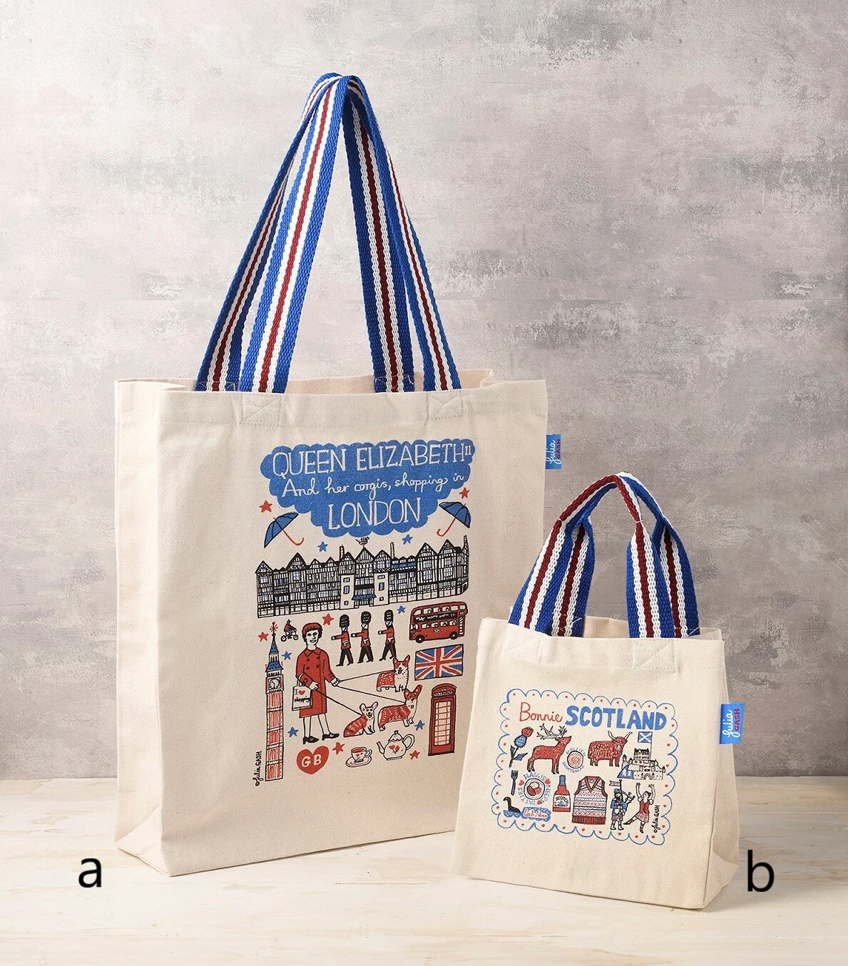 ユニークなイラストが人気の英国人デザイナー、ジュリアガッシュ。こんな可愛らしいデザインのショッピングバッグがあれば、毎日のお買い物がもっと楽しくなること請け合いです。