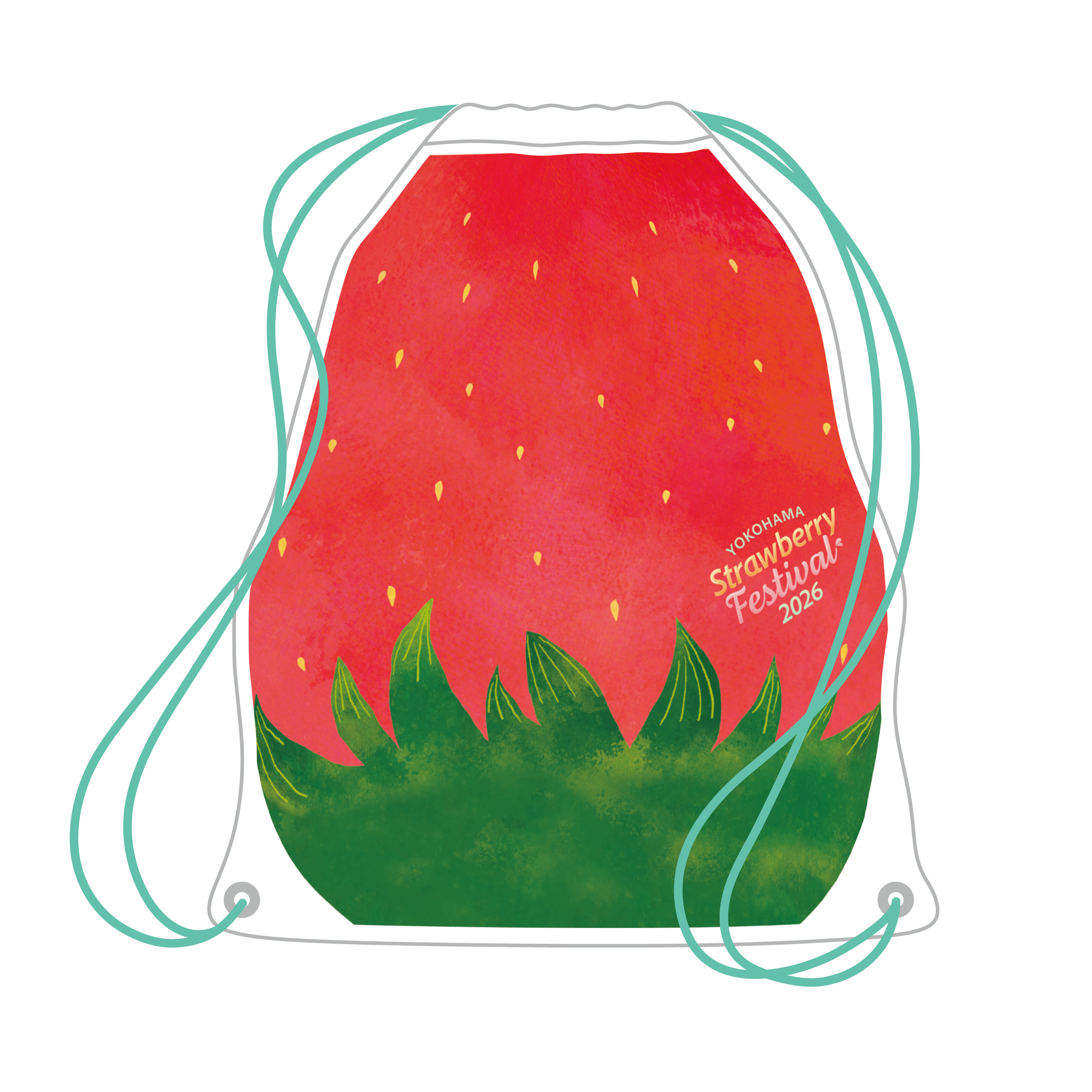 イベント期間中、横浜赤レンガ倉庫1・2号館内の対象店舗で1会計につき2,000円以上(税込)お買い上げのお客様に、イベントキービジュアルのデザインをあしらった「いちごナップサック」をお会計時にプレゼント!横浜赤レンガ倉庫を訪れた記念として、いちごを身に着けて会場内や街歩きを楽しめるアイテムです。