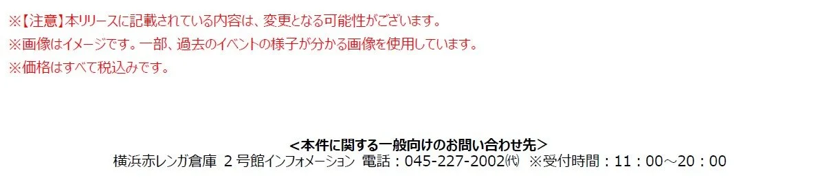 ⚫︎主催 :横浜赤レンガ倉庫(株式会社横浜赤レンガ・公益財団法人横浜市芸術文化振興財団)